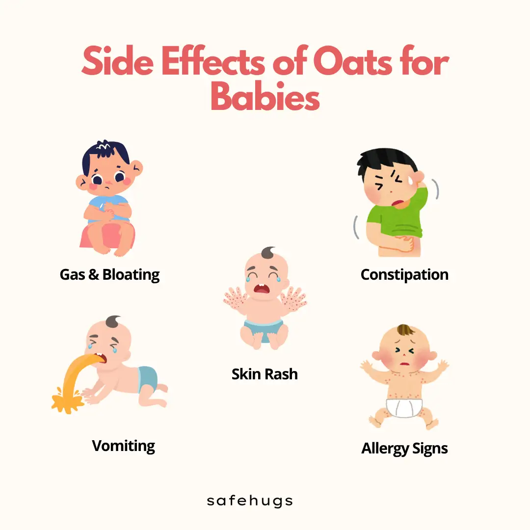 In some babies, oats may lead to constipation, especially if the baby is not getting enough fluids. This is one of the commonly discussed side effects of oats for babies constipation. To balance this, you can pair oats with fruits like pear or papaya, which naturally support digestion.